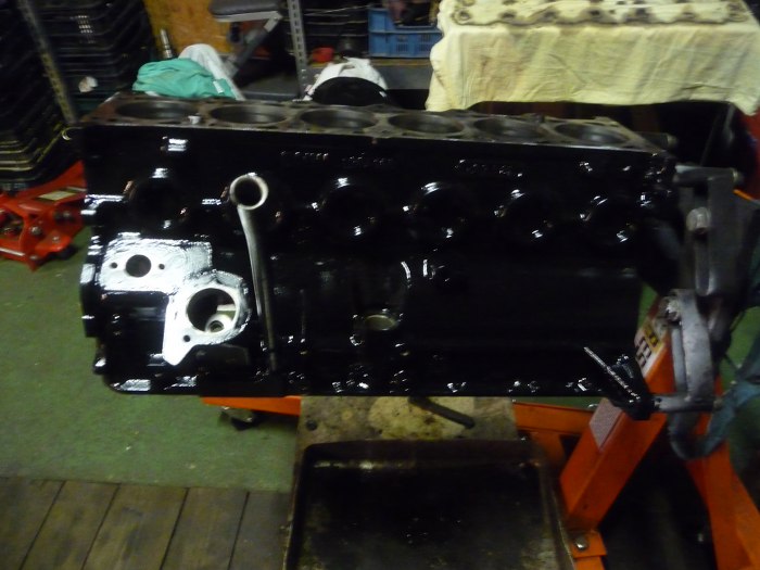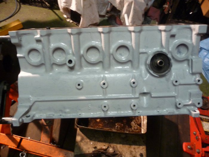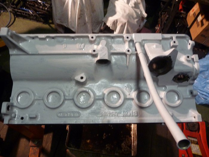 Blok został umyty, odtłuszczony i wysuszony w środku. Teraz będę czyścił zewnętrzną część z rdzy, oleju i resztek farby. Podczas czyszczenia blok jeszcze się zabrudzi w środku, ale dzięki temu, że jest wstępnie umyty, dużo łątwiej później będzie go domyć po pomalowaniu. Mycie rozkładam na dwa etapy, bo po pomalowaniu szkoda by mi było zniszczyć warstwę farby.