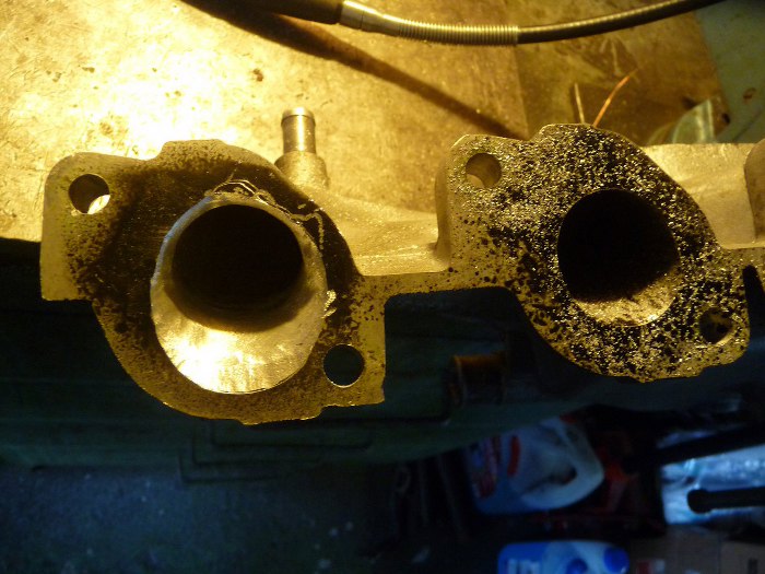 Jędrek przygotował kolektor dolotowy. Ponieważ głowica jest inna, z większymi kanałami dolotowymi, to i w kolektorze wypadało je powiększyć.