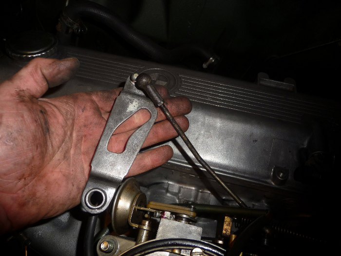 Po przykręceniu gaźnika wystawał element cięgna przepustnic, który słabo wyglądał przy świeżo ocynkowanej reszcie. Jego też ocynkuję, żeby wstydu nie było :).
