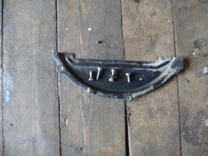 Znalazłem stare zdjęcie z rozkręcania silnika. Widać, że jedno ucho do przykręcania tej blaszki osłaniającej, po prawej stronie, jest ułamane.
