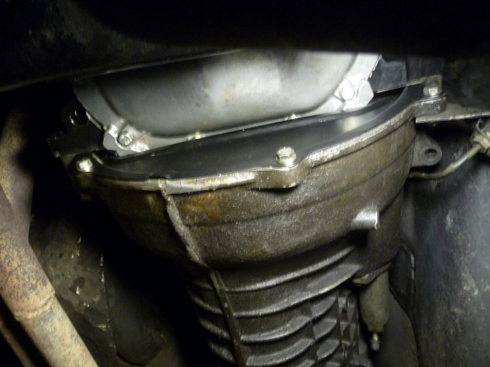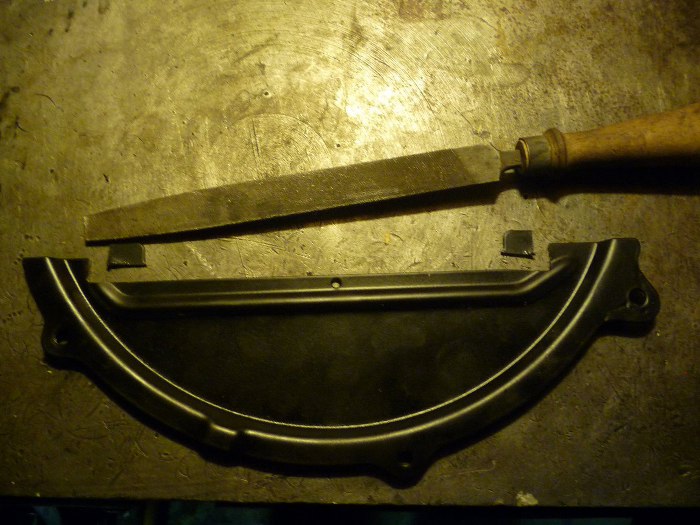Niestety, do "nowej" miski olejowej ta blaszka nie pasowałe. Musiałem ją odrobinę przerobić. Zakres przeróbek widać na zdjęciu.