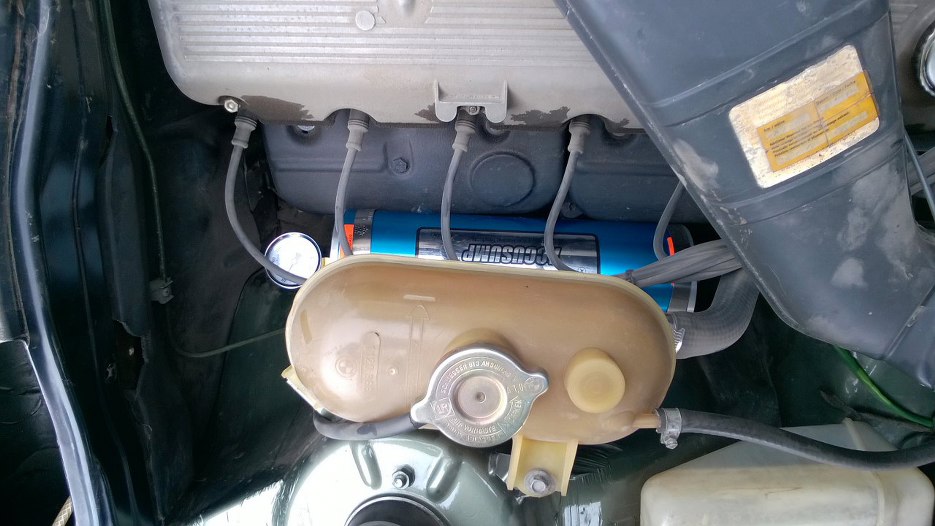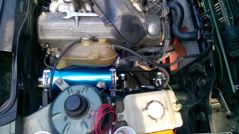 O, tu jest jeszcze trochę miejsca :) Węże tu widoczne są robione przeze mnie do chłodnicy oleju, ale wylatują. Po lewej widać filtr oleju.