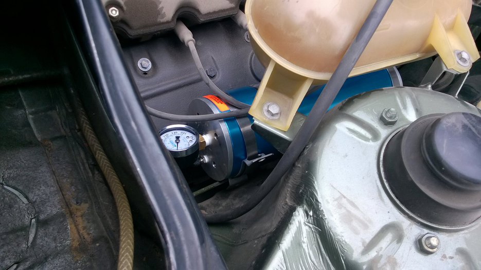 A tak to wygląda w działaniu na sucho, czyli przy wyłączonym silniku. Po włączeniu widać, że przez pewien czas silnik jest smarowany olejem z akumulatora ciśnienia oleju. To oczywiście na sucho; podczas wyścigu Accusump ma zapewnić smarowanie silnika w momencie, gdy pompa oleju nie łapie oleju z miski olejowej.
