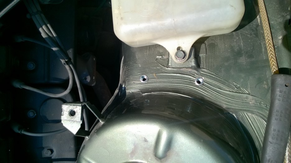 Całość będzie przykręcona do karoserii śrubami M6 wkręcanymi w nitonakrętki - jest to schludne i pewne mocowanie. W trzech miejscach nie dałem rady zacisnąć nitonakrętek bez wyjmowania silnika... nie, nie wyjąłem silnika, dałem zwykłe nakrętki :).