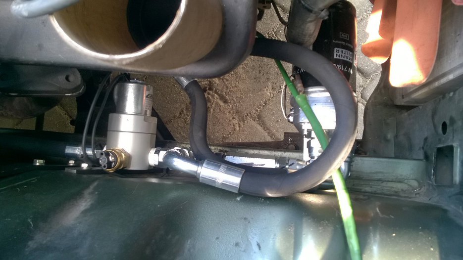 Teraz pozostało to tylko podłączyć elektrycznie, czyli zasilić elektrozawór. Ponieważ prace trwały do ostatniej wręcz chwili przed wyjazdem na zawody, więc nie miałem już czasu rozcinać poprzednich rurek termokurczliwych z wiązki od czujników, żeby dodać kabelek zasilania Accusumpa, więc przyczepiłem go po prostu opaskami.