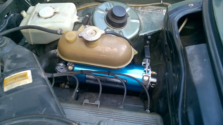 Na koniec montażu części hydraulicznej przykręciłem zbiorniczek wyrównawczy. Tak to wygląda.