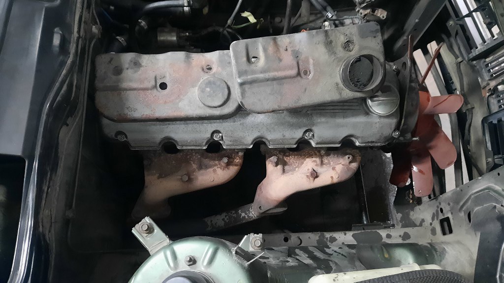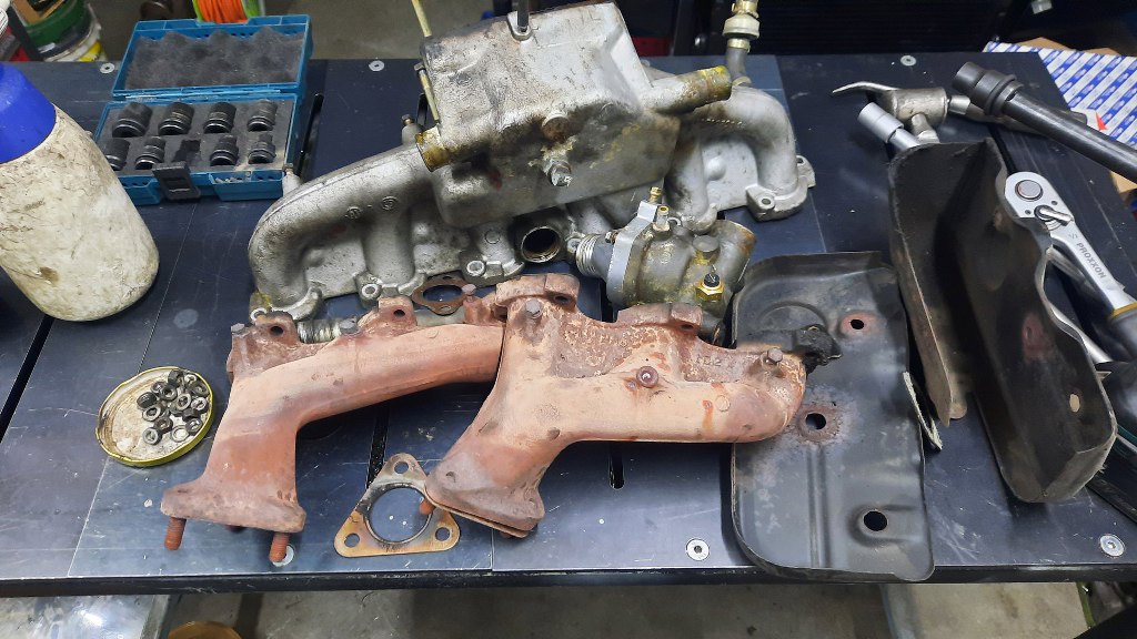 Odkręciłem też kolektory wydechowe. Udało mi się nawet odkręcić je od reszty układu wydechowego bez urwania czegokolwiek.