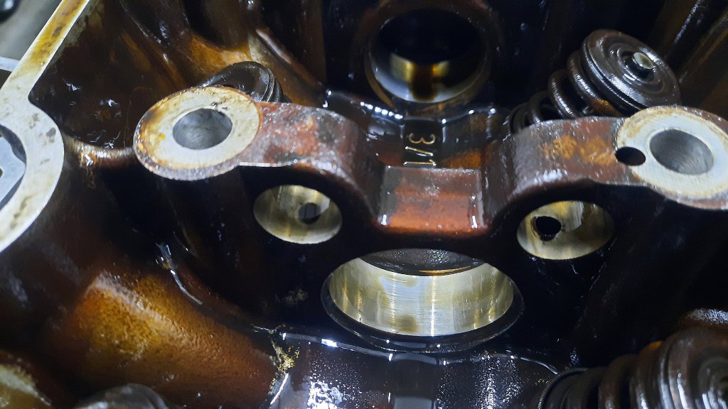 Podpory wałka rozrządu wyglądają obiecująco. Są ślady, ale to tylko na zdjęciu groźnie wygląda, na żywo jest dobrze.