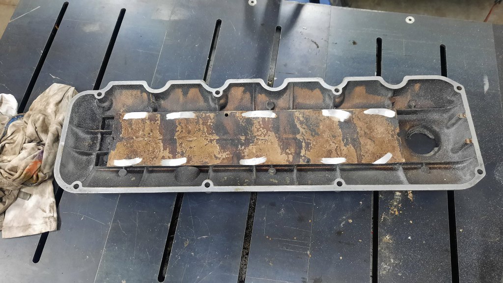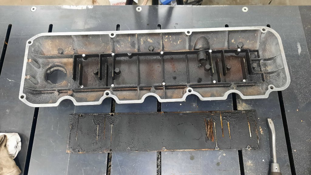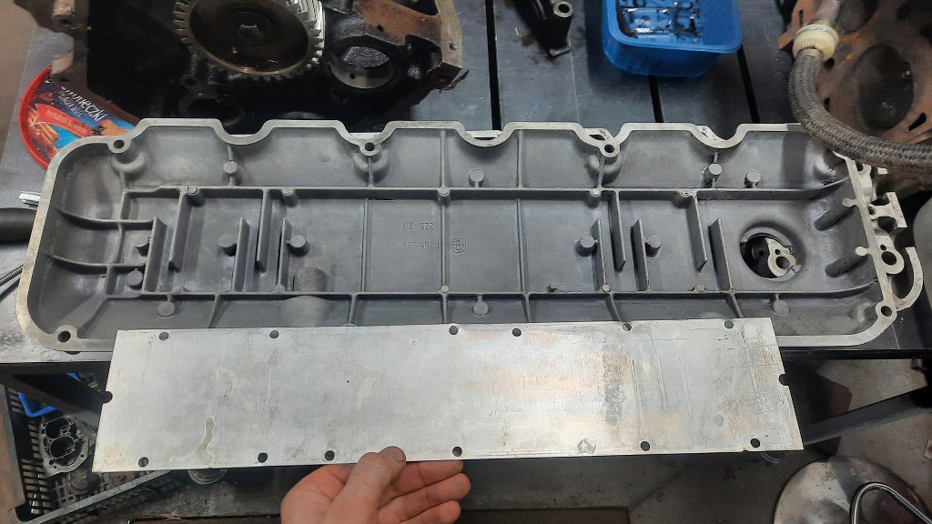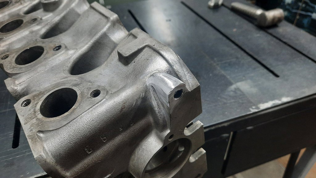 Mały skok w tył, bo zrobiłem to znacznie wcześniej - pokrywa rozrządu ma wyjście na odmę. Ale zanim opary z silnika trafią z niej do filtra powietrza, przechodzą przez labirynt, pełniący funkcję separatora par oleju. Zgaduję, że jest tam brudno :). Niestety nie da się tam dostać inaczej, niż zeszlifowując fabryczne zakucie.