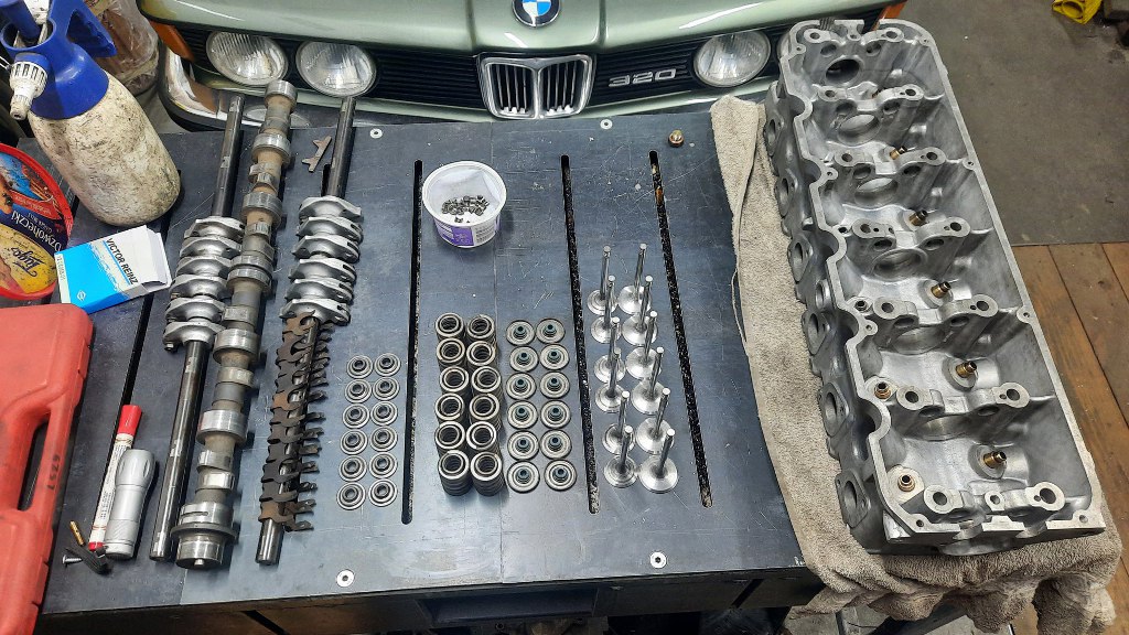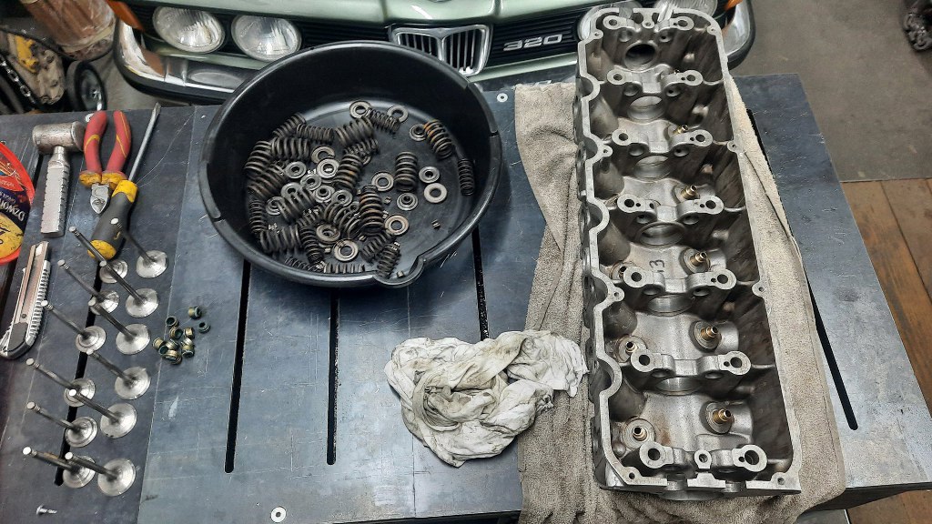 Potem rozłożyłem zawory. Dzięki temu łatwiej mi ją będzie domyć w zakamarkach. Zmienię też uszczelniacze zaworowe - nie wyglądają źle, ale totalnie nie mam pojęcia w jakim są stanie. A łatwiej i taniej jest wymienić je zapobiegawczo, niż później się do nich dostawać.