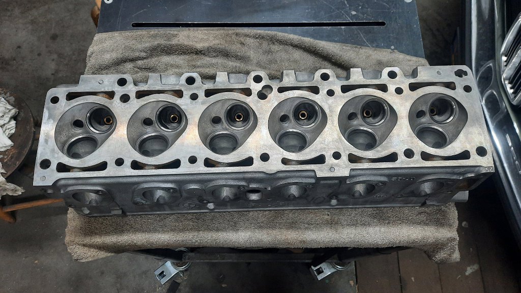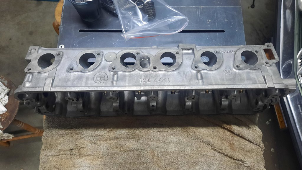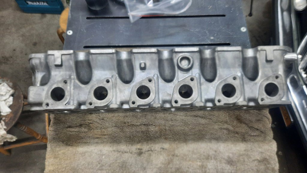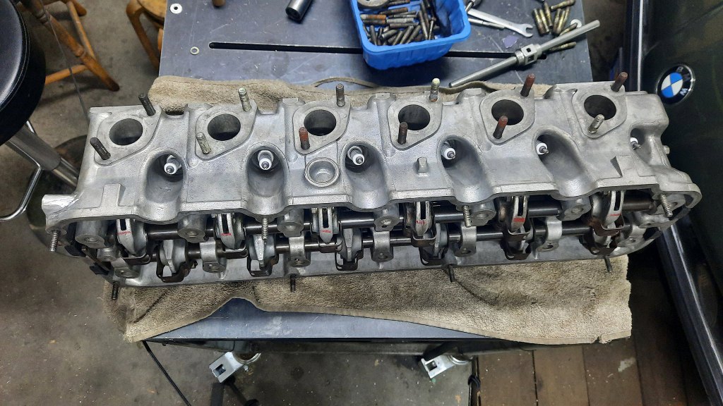 Paweł jednak przeszukał otchłanie ogłoszeń w internecie i znalazł następną głowicę, znowszego BMW. Ta już nie ma problemów z pękaniem (podobno), ale jest ciut inna. Ma większe kanały ssące i nie ma jednego otworu do układu chłodzenia. Nie przeszkadza to jednak w jej skutecznym użyciu w tym silniku. Ta akurat głowica została kupiona po planowaniu. Wyglądała na dobrą, przynajmniej otwory na wałek rozrządu są w bardzo dobrym stanie. Pierwszą rzeczą, jaką zrobiłem, to zawiozłem do szlifierni na sprawdzenie szczelności :). Ale na szczęście jest cała. Mogę działać.
