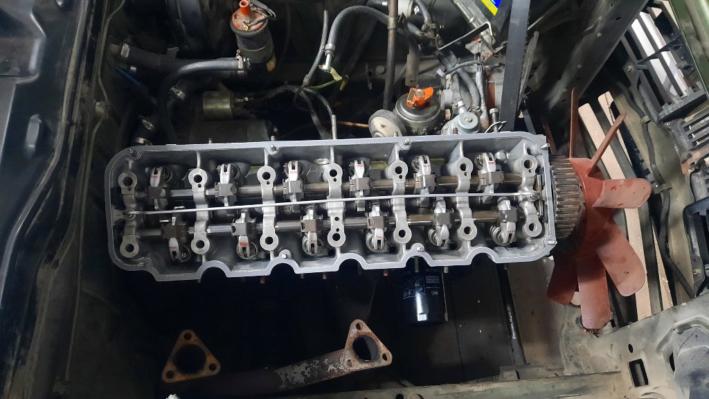 Przy głowicy mamy dwa znaczniki, które muszą się zgrać w GMP. Wtedy można naciągnąć i założyć pasek rozrządu i napiąć napinacz. Potem zrobiłem dwa obroty wałem korbowym, a znaczniki nadal były we właściwych miejscach. Dziwne. Coś musiałem zrobić dobrze :).