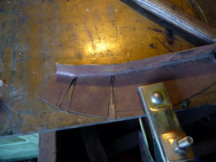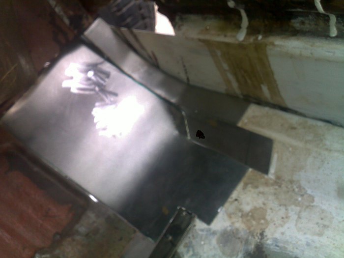 Duża łatka złapana w kilku punktach na przymiarkę. Mimo, że była dobrze dopasowana, musiałem podczas przymierzania jeszcze ją sporo młotkiem popukać, żeby się ułożyła tak jak trzeba.
