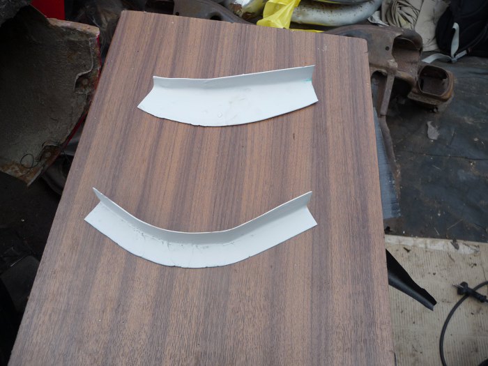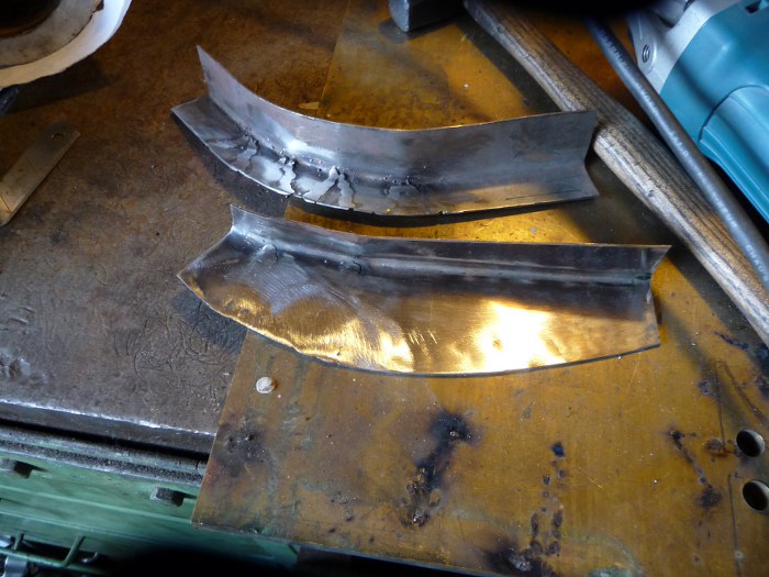Łatki gotowe. Zanim je wspawamy trzeba je pomalować. Tylko miejsca na spawy oszlifujemy już po przymierzeniu. Część podkładu się i tak wypali przy spawaniu, ale część zostanie...
