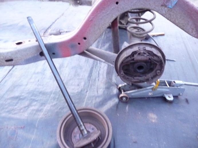 Po wyjęciu półosi łatwizna. Odkręciłem tarczę kotwiczną nie ruszając nic innego, żeby sprężynek nie pogubić. Półoś i koło założyłem z powrotem, bęben przymierzyłem do drugiego mostu i... się okazało, że caprice 5.0 z 1981r. miał inny rozstaw szpilek niż caprice z 1991r., z którego mam drugi most. Prawdopodobnie włożę starsze półosie do nowszego mostu, żeby zachować ten rozstaw szpilek, bo mam takie i felgi i przednie tarcze... Zobaczy się.