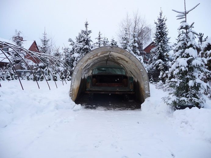 I niestety namiot, w którym stał Buick zaczął się zapadać pod śniegiem. Musiałem odkopać go z zaspy i przestawić do drugiego namiotu.