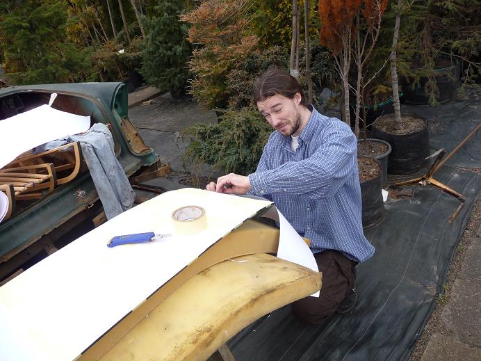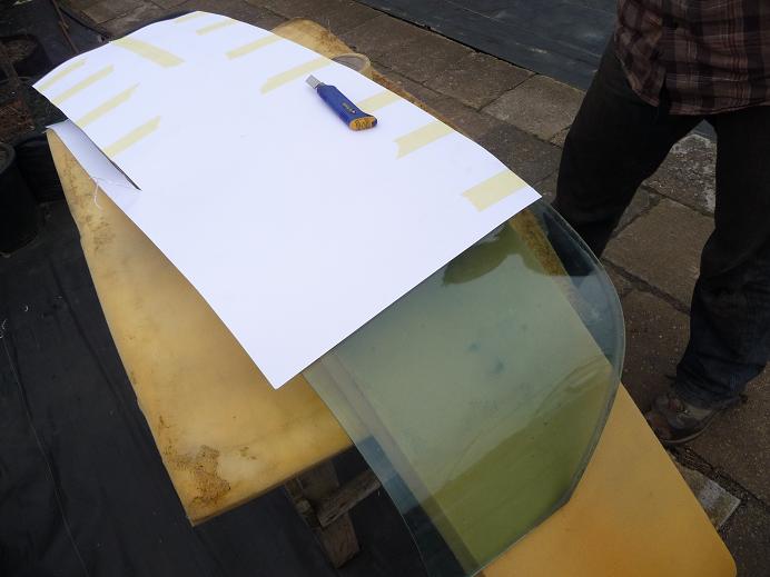 Zacząłem od wyjęcia tylnej szyby (znowu stresująca sytuacja). Stwierdziłem, że zrobię na wszelki wypadek szablon, żeby mieć z czego zrobić tylną szybę jakby się stłukła. Łatwo nie było... Co widać po mojej minie na jednym ze zdjęć :)