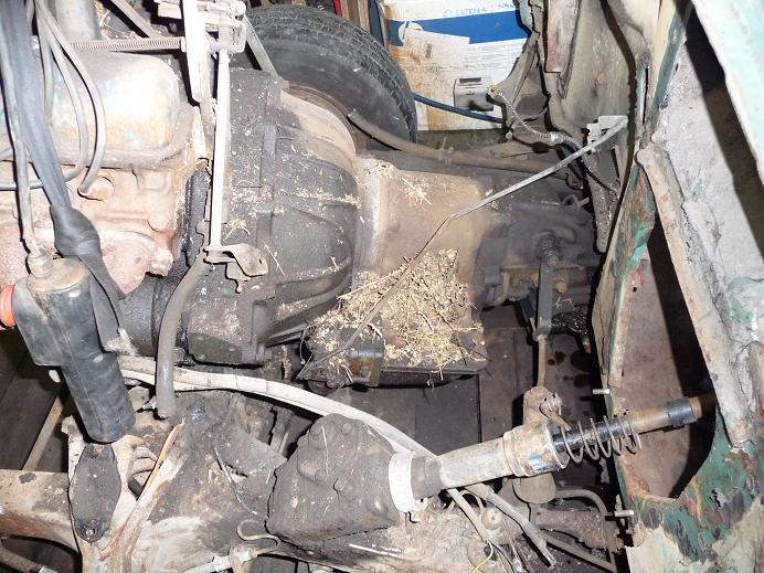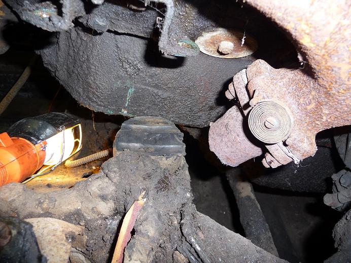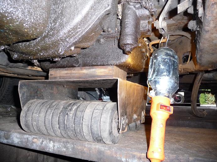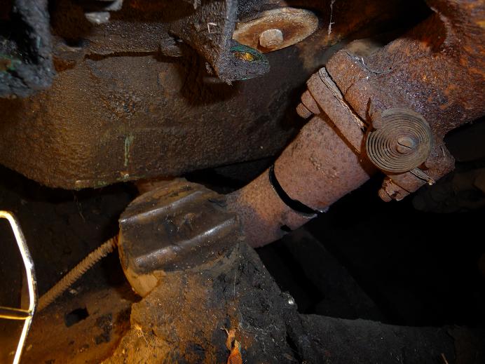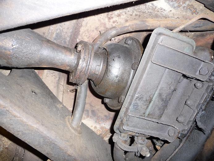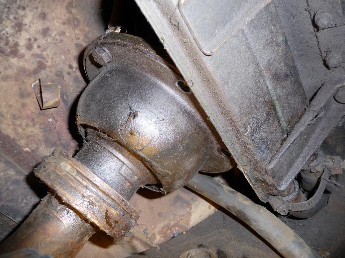 Tu widać połączenie skrzyni biegów z rurą, w której jest wał napędowy. Co by tu odkręcić? Bliżej skrzyni, czy dalej?