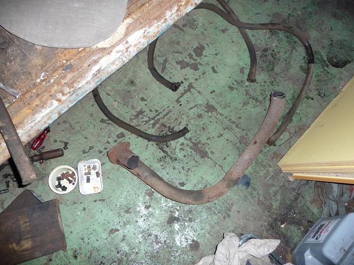 Próbowałem odkręcić rury wydechowe, bo zawadzały przy podnoszeniu silnika do góry.