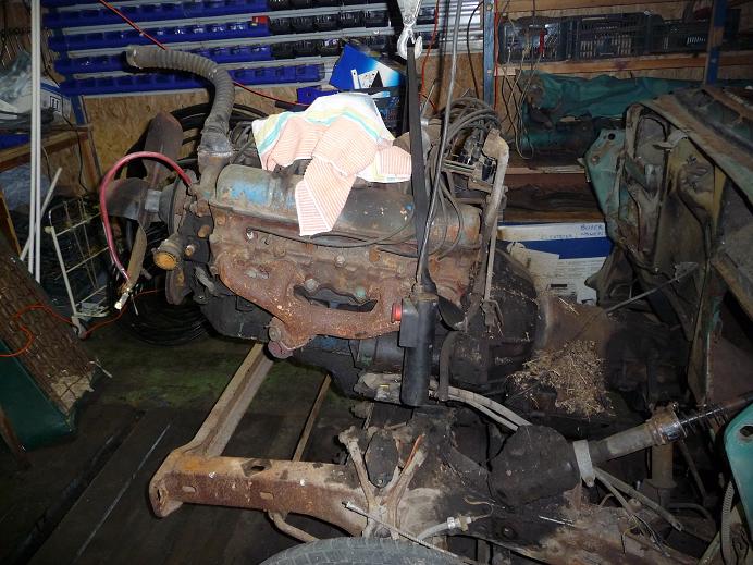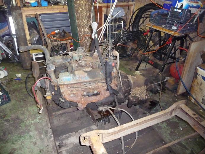 Jak tu pusto. Co mnie zaskoczyło, to że silnik za skrzynią jest potwornie ciężki. Waży ponad pół tony!!! Wyciągarka ledwo dała radę. Za to samochód zrobił się bardzo leciutki...