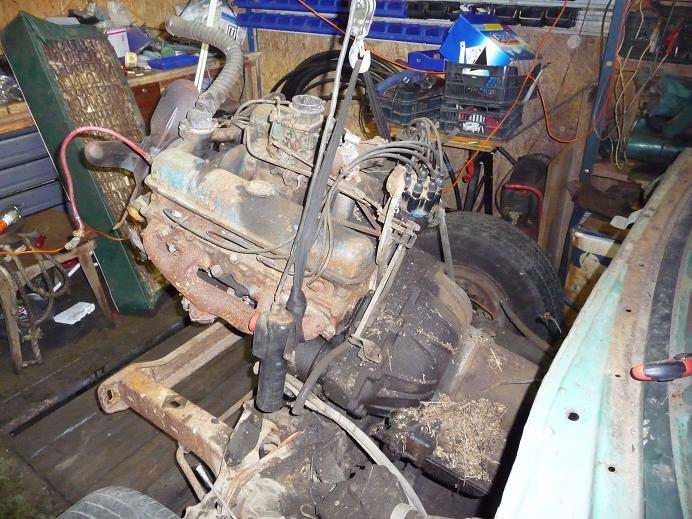 Potem nadszedł czas na długo oczekiwane wyjęcie silnika. Buick wjechał do garażu.