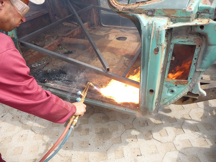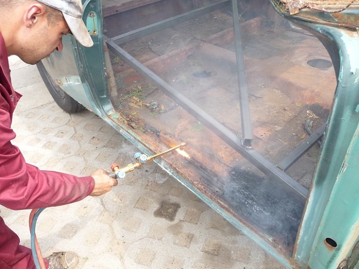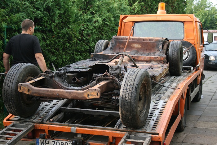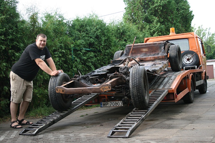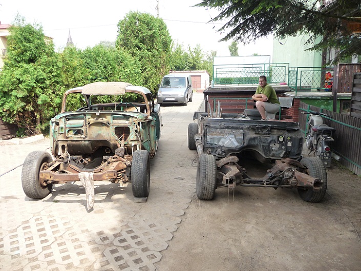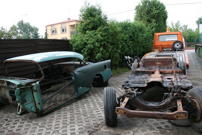 Po prawej materiał na auto, po lewej podwozie, z którym chwilowo nie wiadomo co zrobić.