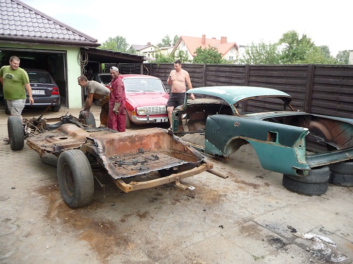 Tu brakuje zdjęć z momentu podnoszenia karoserii, ale musiałem przestać się obijać i pomóc podnosić skorupkę.