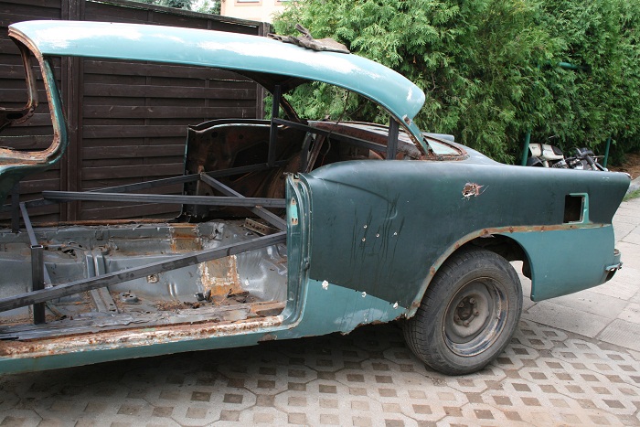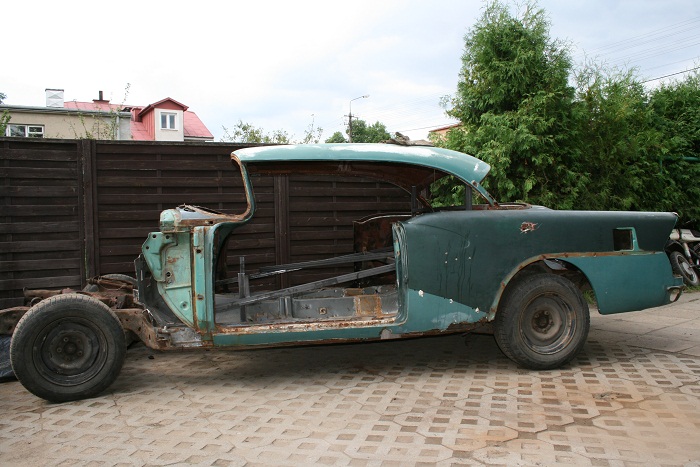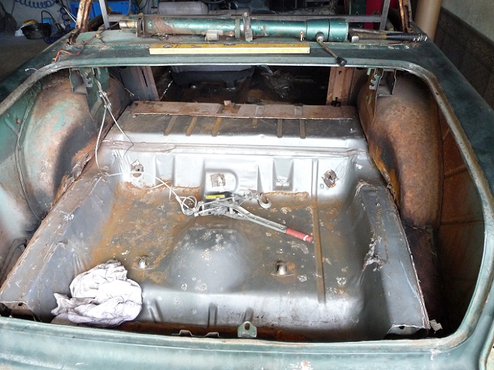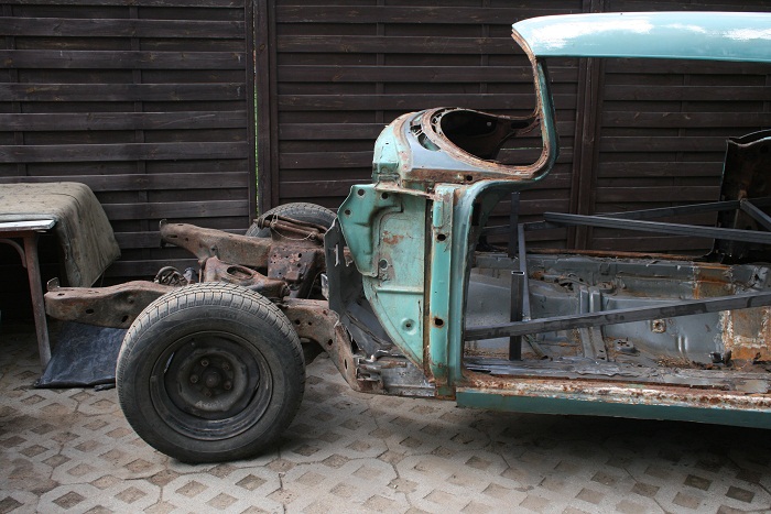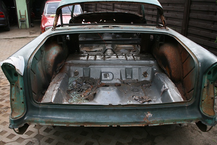 Nadkola z tyłu w Buicku były bliżej środka auta, ale też dało się to dopasować. Pozostaje pytanie co z tylną cześcią podłogi - czy zostawić ten poziom co jest teraz, czy obniżyć ramę i opuścić podłogę do poziomu na jakim była w Buicku.