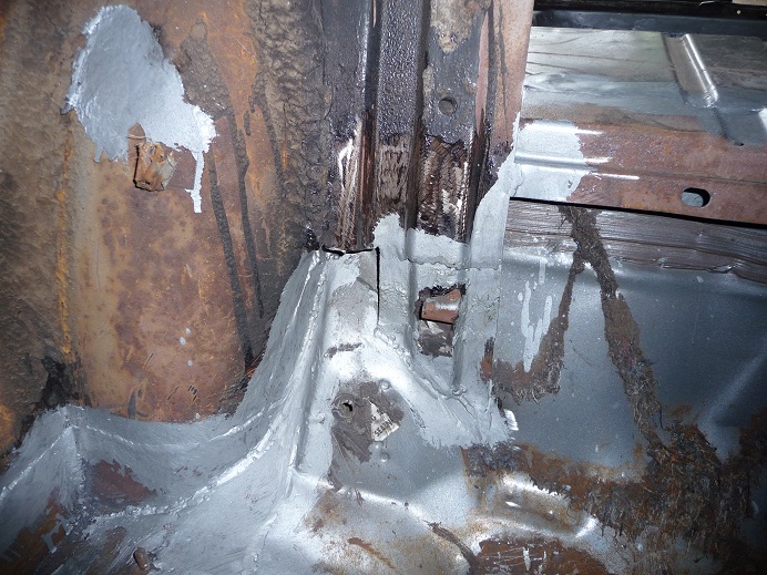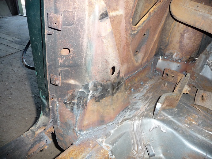 Wstępne załapanie spawami słupków "B" i miejsca pod siedzeniem pasażerów z tyłu.
