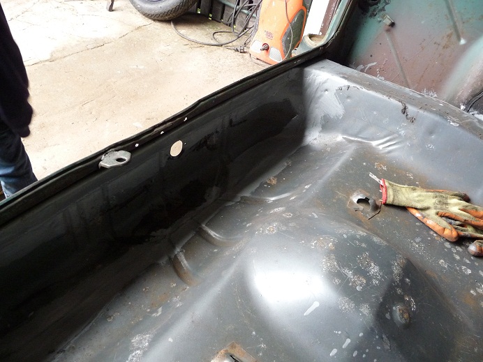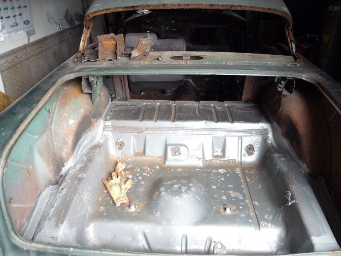 Widać pod tylnym pasem resztki starej podłogi bagażnika, trzeba wymyślić coś, co będzie tu trzymać pas tylny do reszty.