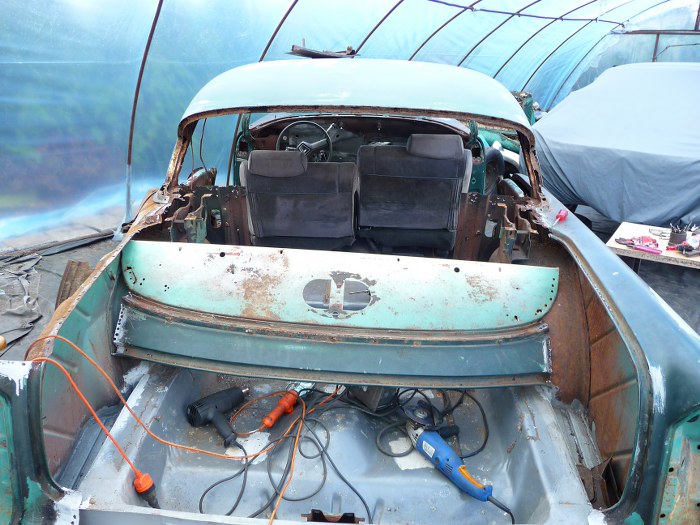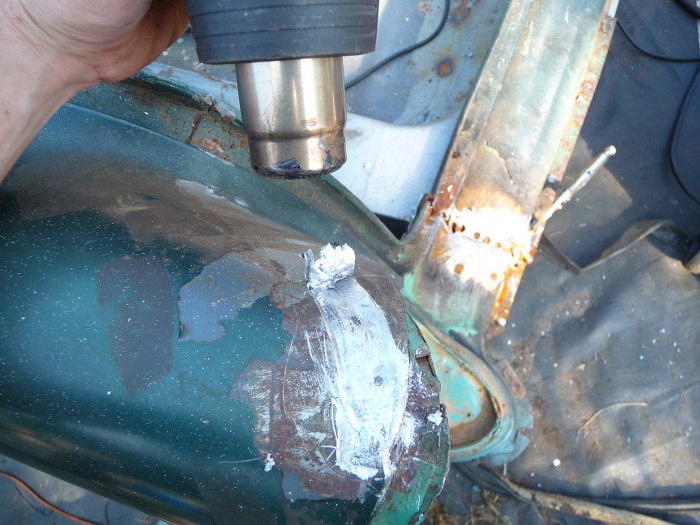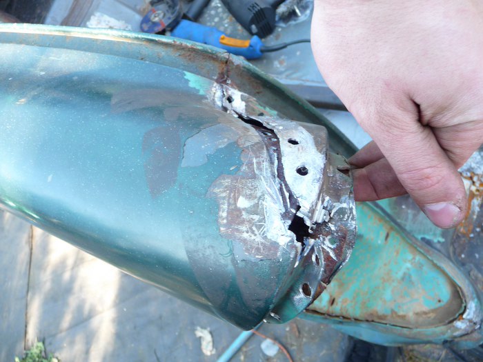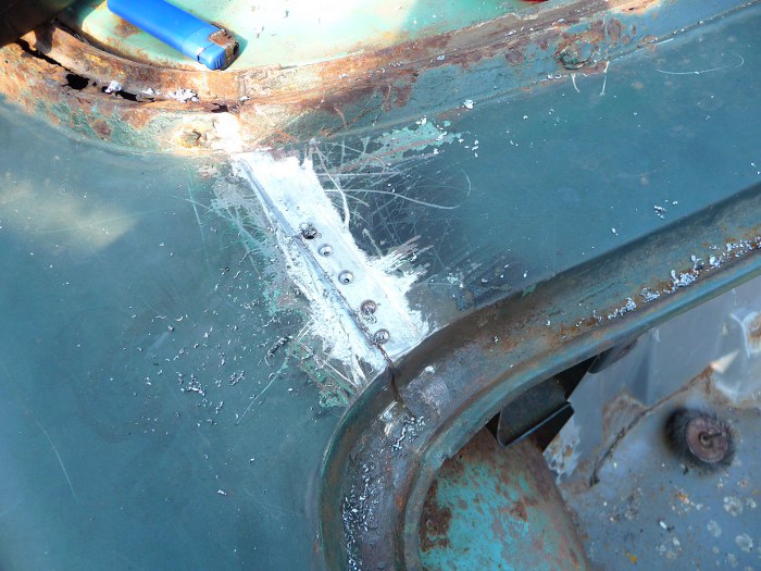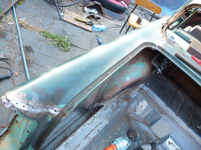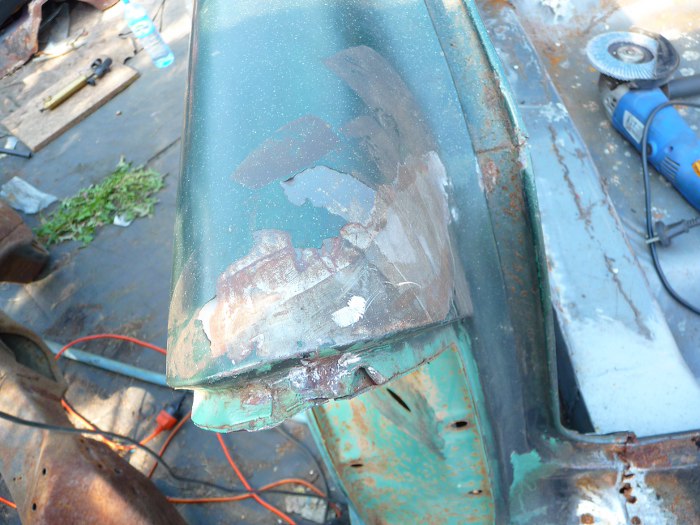 Tu łączenie błotnika z elementem tyłu, jeszcze z ołowiem.