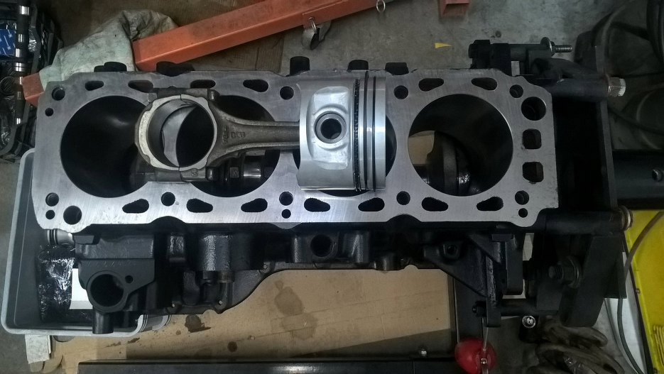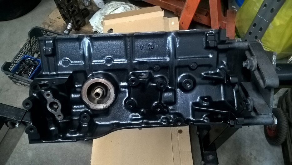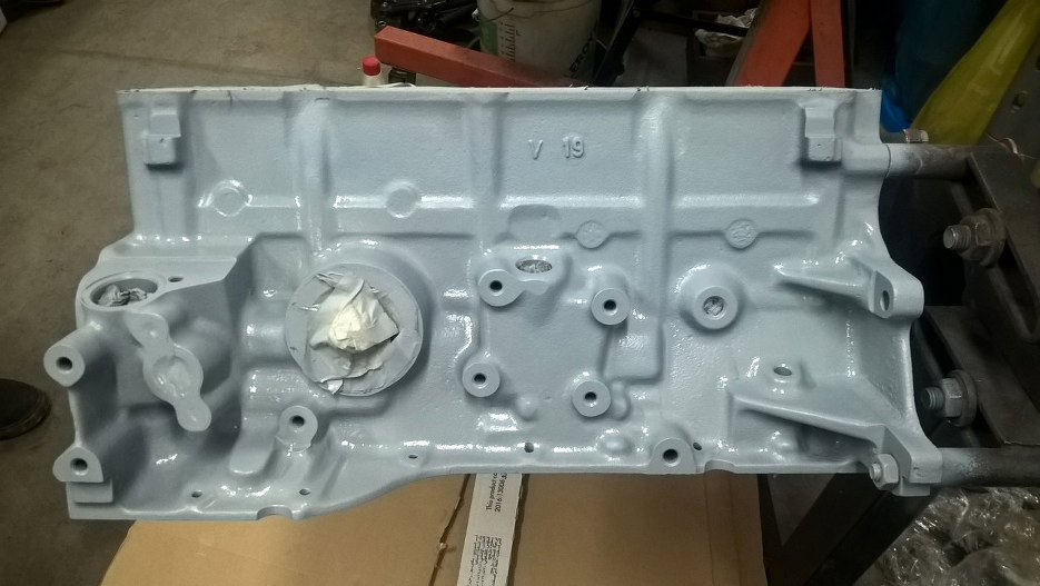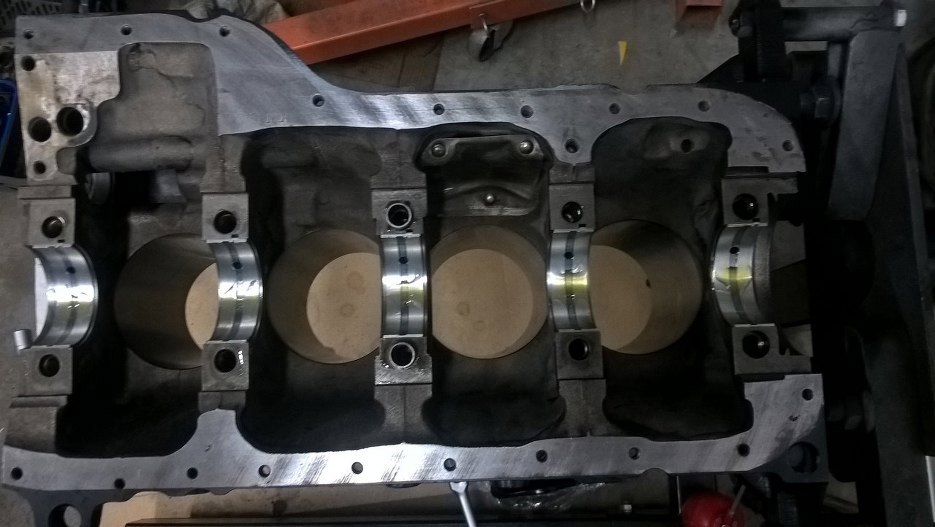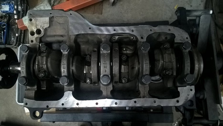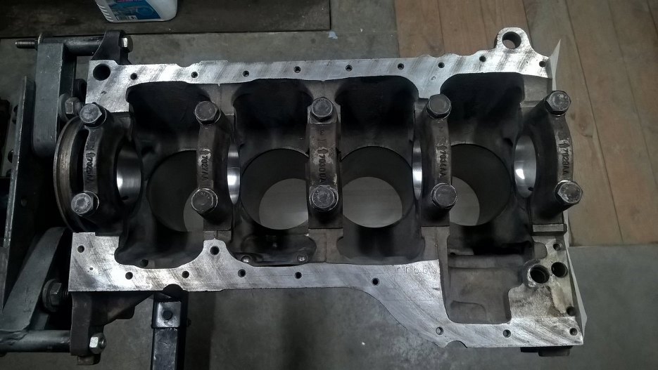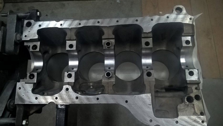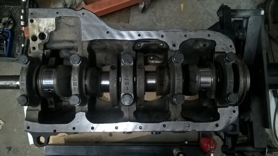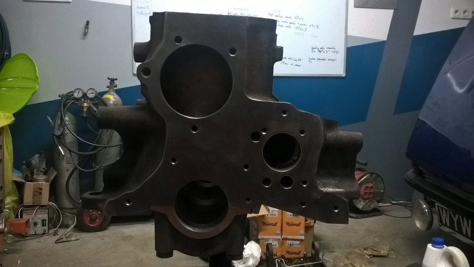 Po rozkręceniu silnika Dred zajął się przygotowaniem części do malowania, cynkowania itp. Ja zorganizowałem prace w szlifierni. Okazało się też, że oryginalna głowica była pęknięta na 3 cylindrze, znaleziona została zastępcza. Dwie tuleje cylindrowe były w idealnym stanie, więc zostawiliśmy je w spokoju. Po zakupie kompletu nowych tłoków dwa zniszczone cylindry zostały tulejowane. Podpory wału wymagały osiowania.