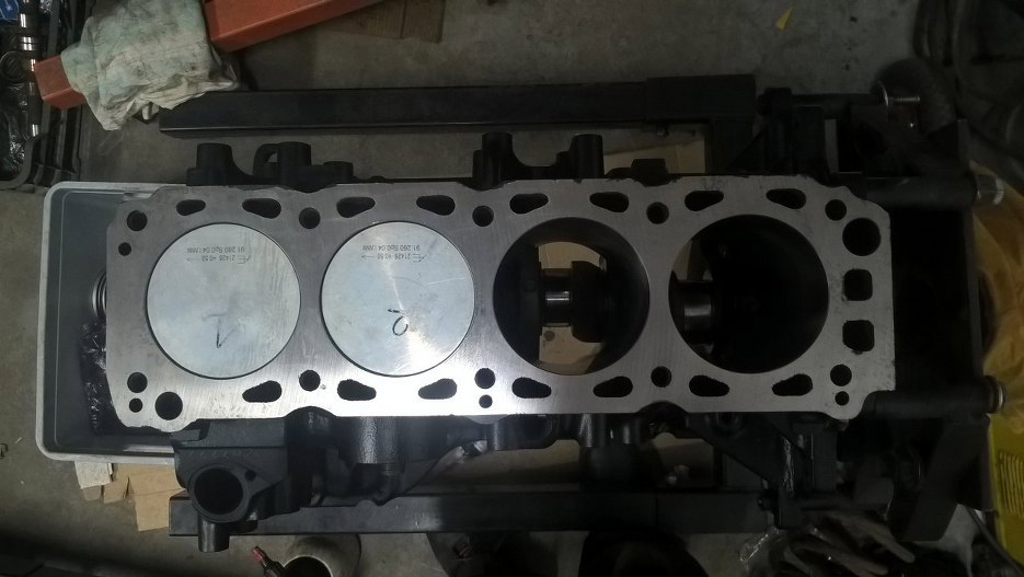 Tłoki na miejscu, korbowody przykręcone do wału. Wszystko obraca się jak trzeba.