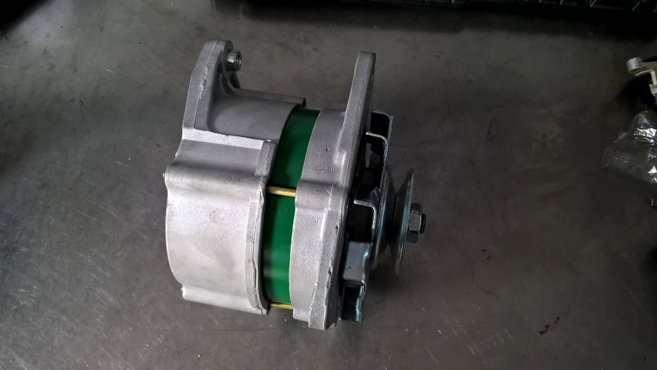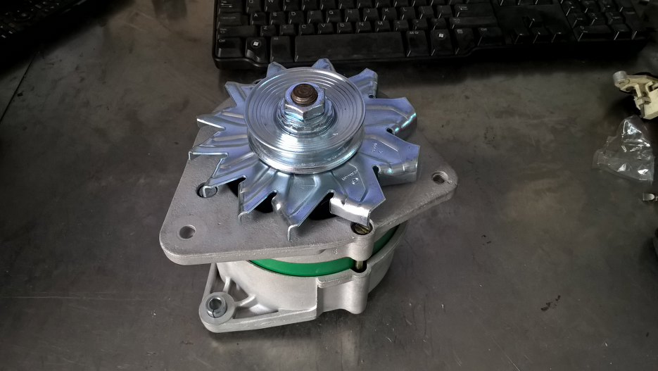 Założyłem wiatrak i kółko pasowe i alternator gotowy. Wygląda ślicznie i tak też będzie działać.