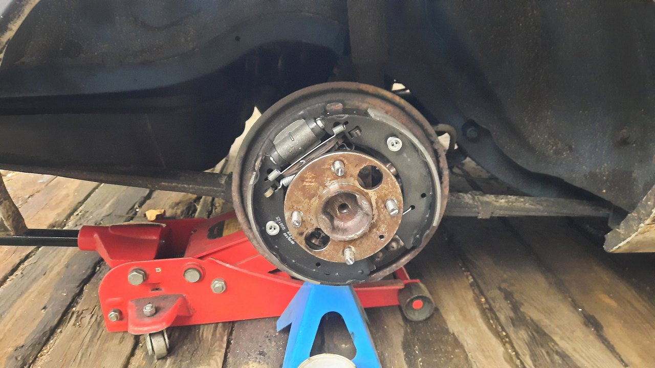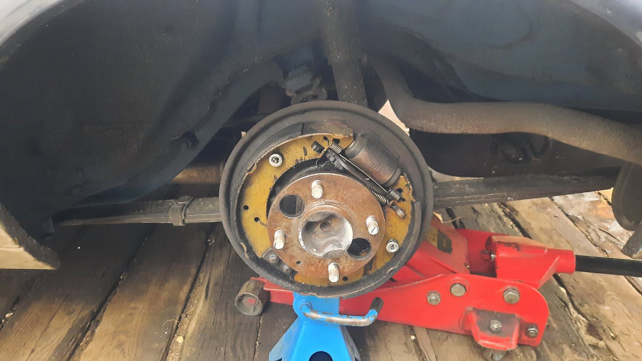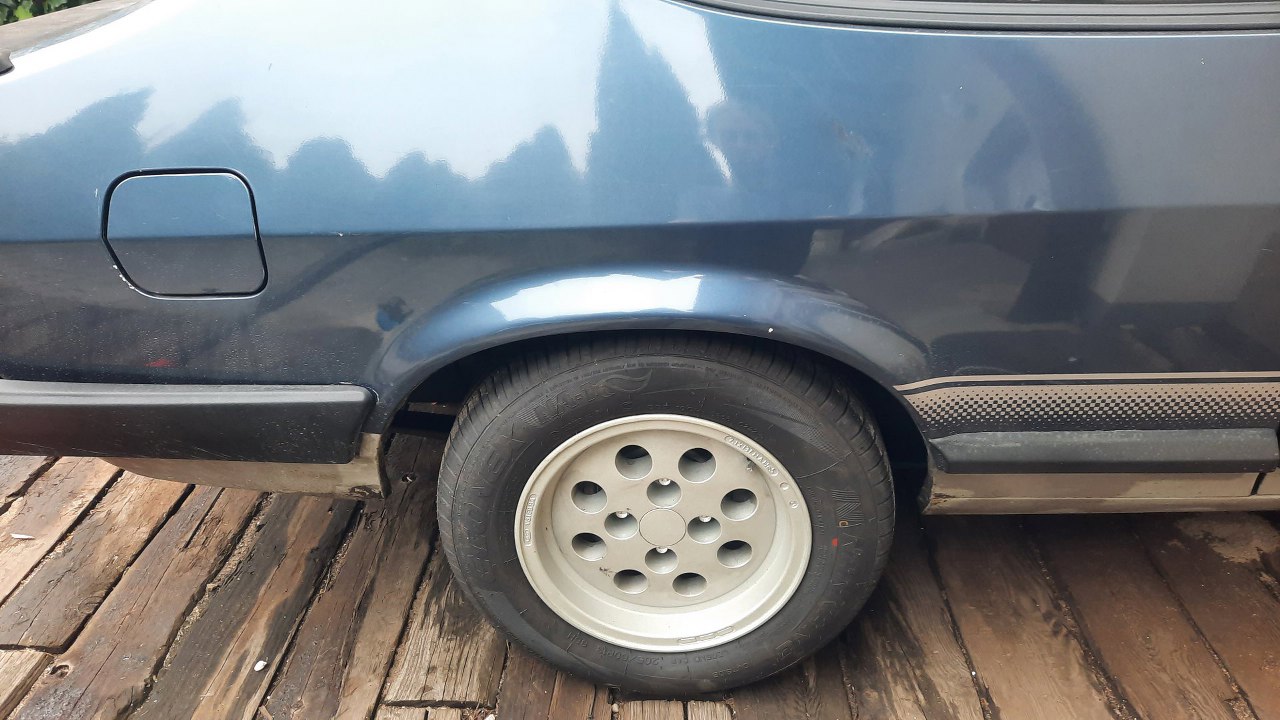 Przy okazji pobytu Capri u mnie, pojawił się temat niezbyt skutecznych hamulców z tyłu. Po szybkim rzucie okiem do środka zauważyłem, że cylinderki stoją dęba, a okładziny są przesączone olejem z cieknących łożysk półosi. Zamówiłem potrzebne części i po ogarnięciu spraw silnikowych zabrałem się i za to. Capri stoi na felgach nazywanych zdaje się pepper-potami. Ja je bardzo lubię, ale dziwi mnie to, że jestem w tej sympatii osamotniony.