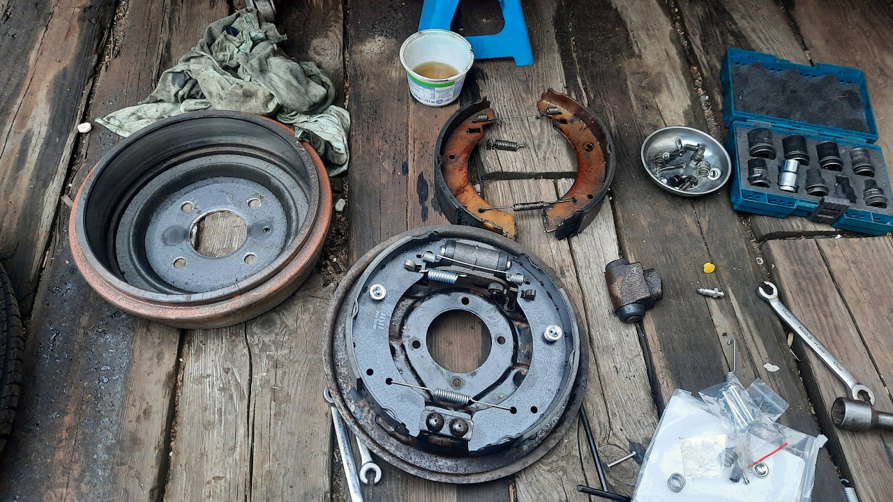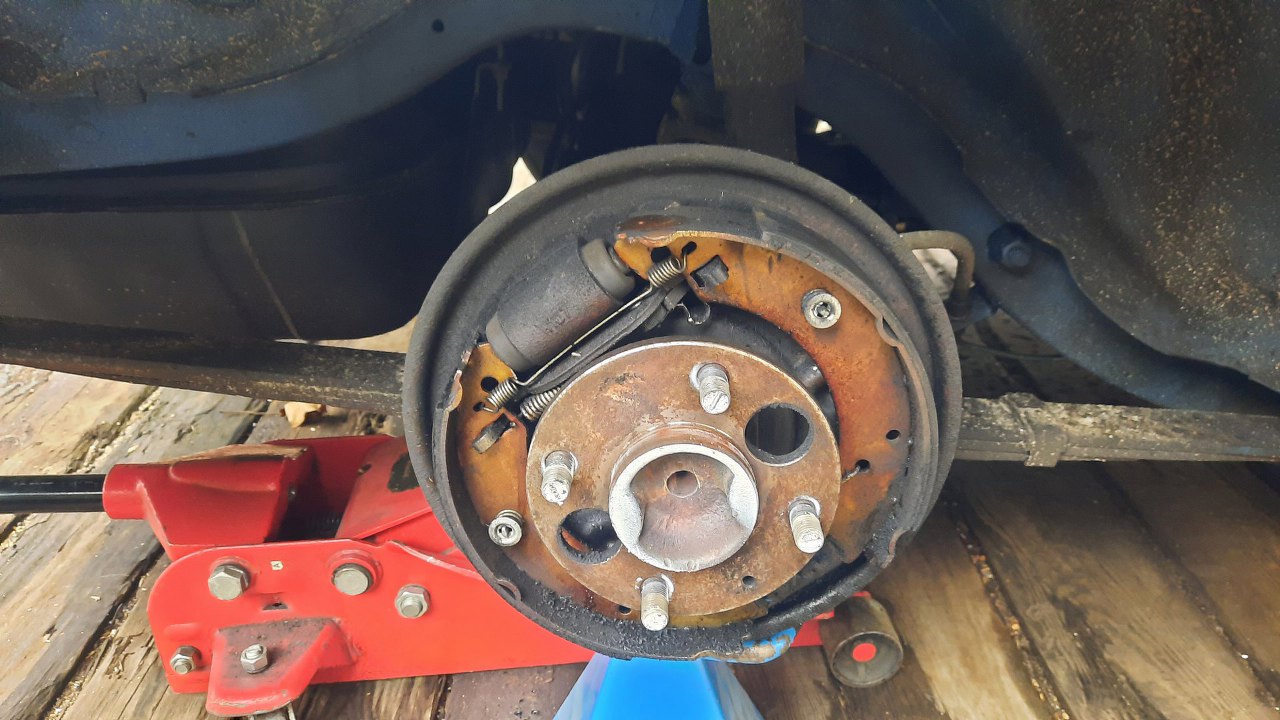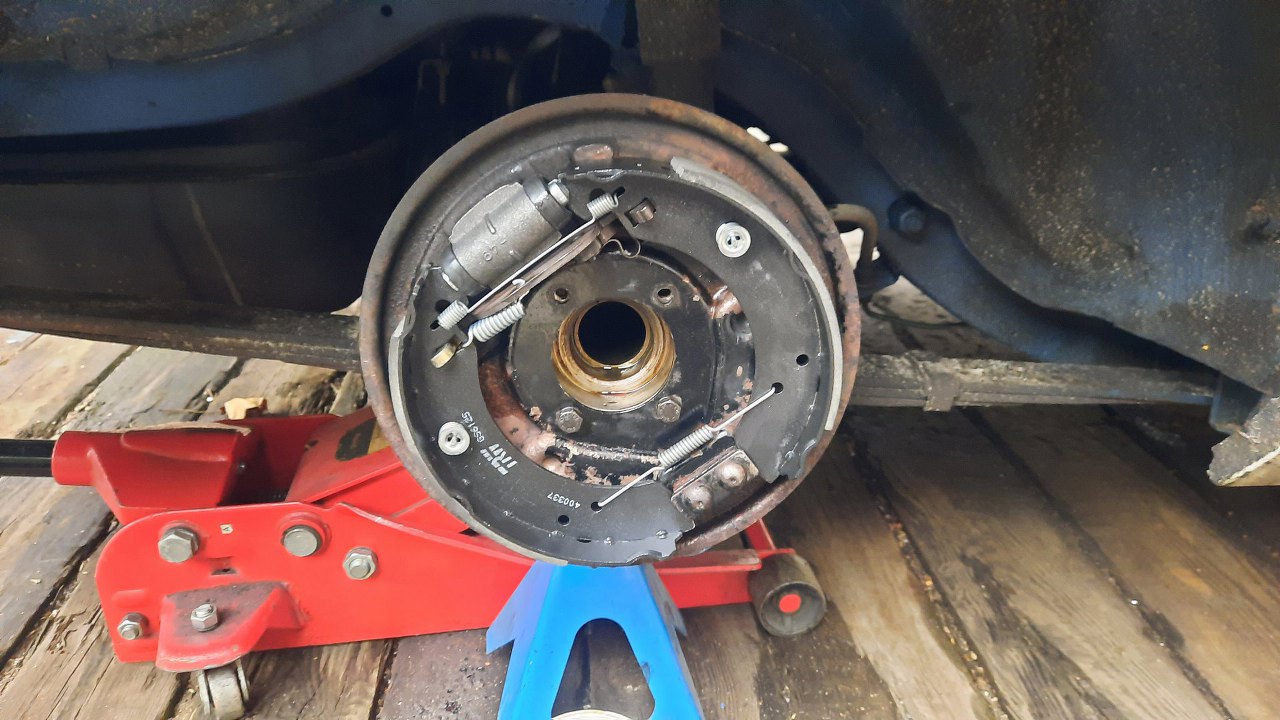Z drugiej strony dokładnie to samo. Cieknące uszczelnienie, przyrdzewiały na amen cylinderek i nasączone olejem okładziny hamulcowe.