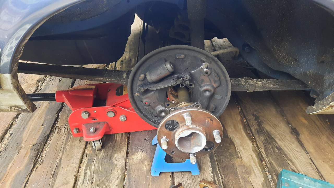Potem odkręciłem rurki hamulcowe od cylinderka, a potem śruby mocujące półoś. Półoś wyszła całkiem sprawnie.