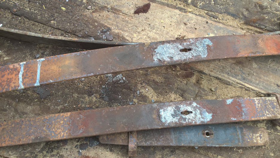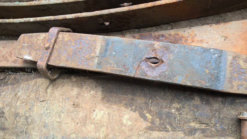 Przy rozkładaniu resorów okazało się, że śruby je łączące nie istnieją (rdza), podkładki teflonowe już też nie, a same pióra są albo przekorodowane albo pęknięte.