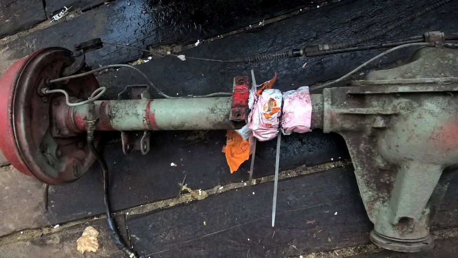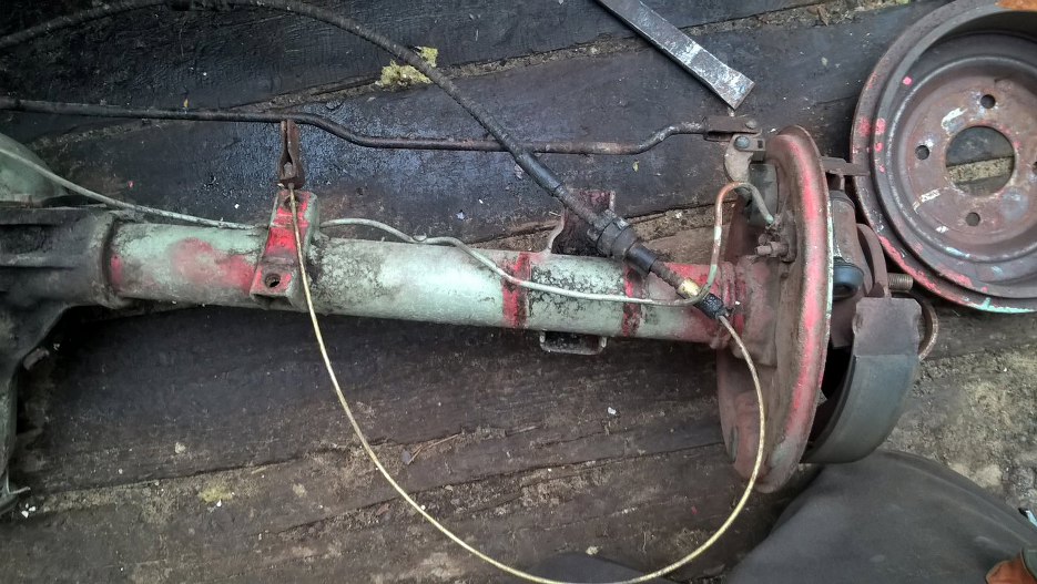 Linka hamulca ręcznego cała zapyziała i zardzewiała. Rurki hamulcowe dorabiane z miedzi, dość krzywe, a i tak pogięte.