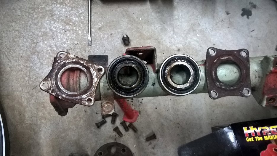 Półosie rozłożone. Widać w jakim stanie są łożyska. Nieco chrupią przy obracaniu :).
