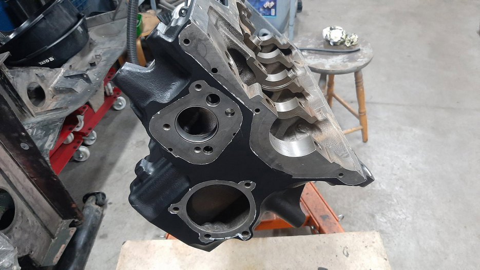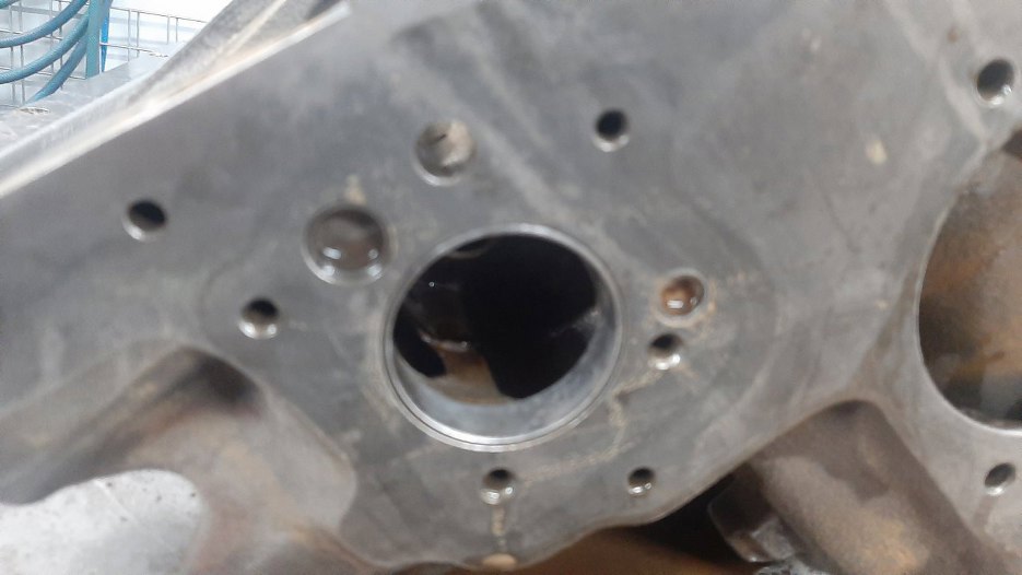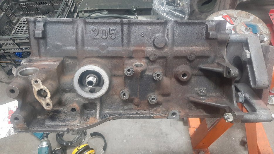 Z przodu bloku są dwa korki kanałów olejowych, tylko zdjęcie niestety niewyraźne.