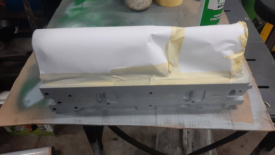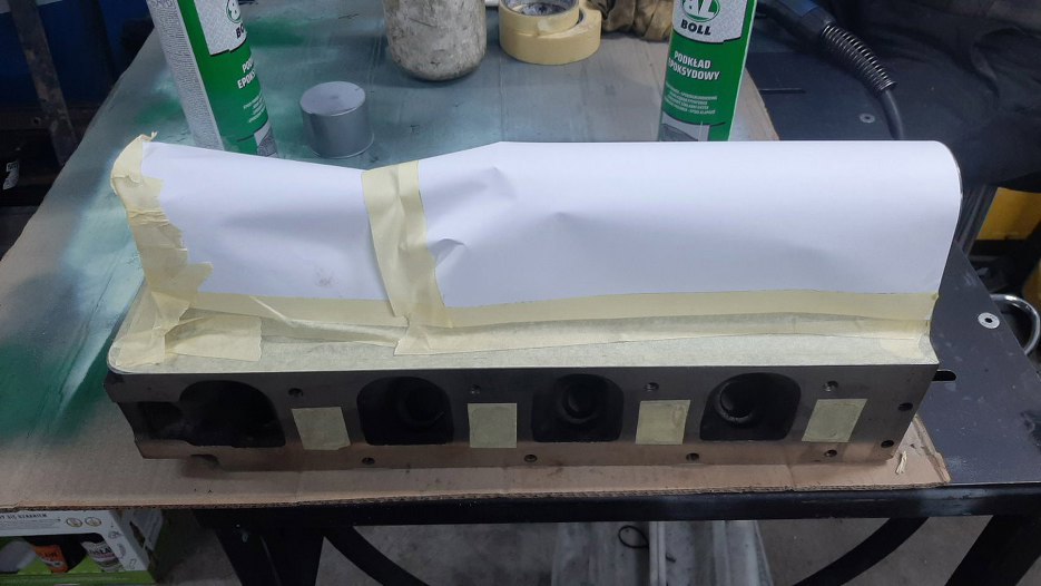 Równolegle z blokiem oczyszczona i przygotowana została głowica. Tu już oklejona.
