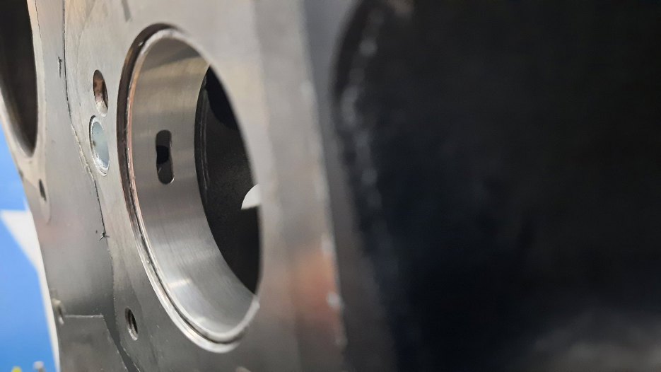 Tu widać przykład jak otwór w panewce trafił na kanał olejowy w bloku.