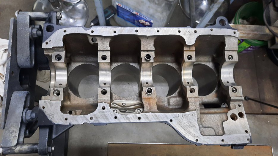 Od ostatniego razu blok przeszedł jeszcze raz planowanie płaszczyzny pod głowicą, żeby osiągnąć ciut wyższy stopień sprężania. Po kolejnym myciu jest już gotowy do składania. Jest to fajny moment - mam prawie wszystko gotowe, a zupełnie pusty blok czeka na części.