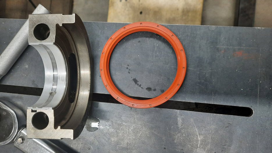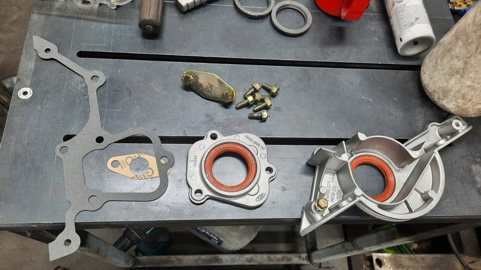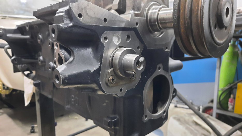 Przygotowałem pokrywki przednie bloku, włożyłem w nie nowe uszczelniacze. Zakładam też zaślepkę pompy paliwa. Docelowo w tym silniku będzie jednak założona mechaniczna pompa paliwa.