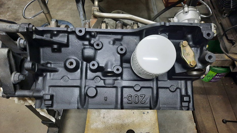 A z drugiej strony zaślepkę pompy paliwa i filtr oleju. Głównie po to, żeby zamknąć otwory w bloku.