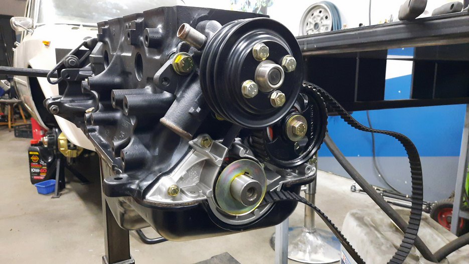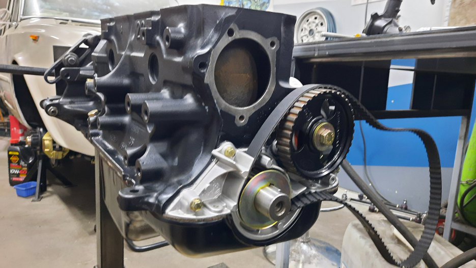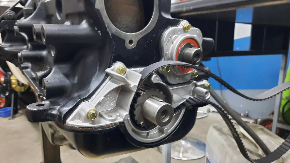 Założyłem na wał korbowy małe kółko napędzające pasek rozrządu, a na to nowy pasek.