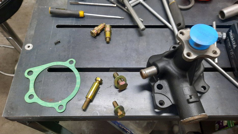 Przygotowałem też pompę wody. Pompa jest nowa, chyba ze starych zapasów, bo jeszcze żeliwna, a nie aluminiowa :). Pomalowałem ją wcześniej.