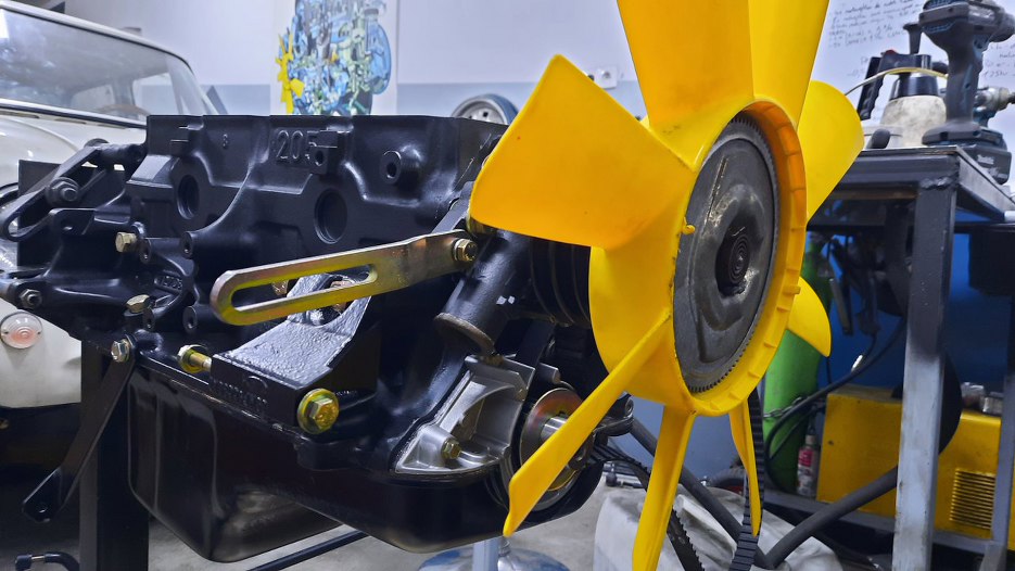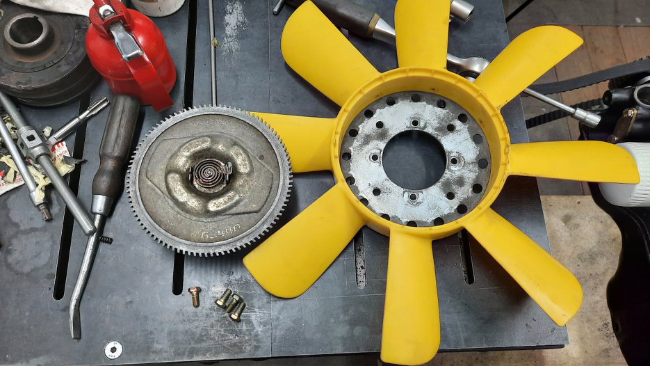 I wszystko przykręcone, łącznie z napinaczem alternatora. Wiatrak jeszcze pewnie będę zdejmował, ale póki co nie będzie się walał na półce. A i wisko tak jest łatwo przechować w pozycji pioowej :).
