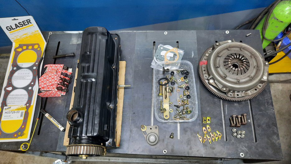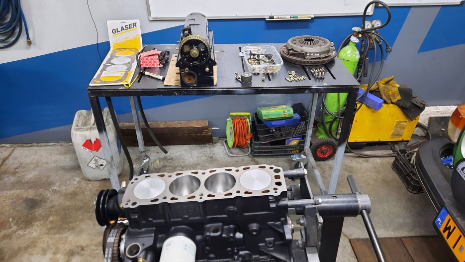 Przygotowałem sobie wszystko, co chcę przykręcić do silnika. No, prawie wszystko, bo nie mam osprzętu - jest jeszcze na silniku w Capri...